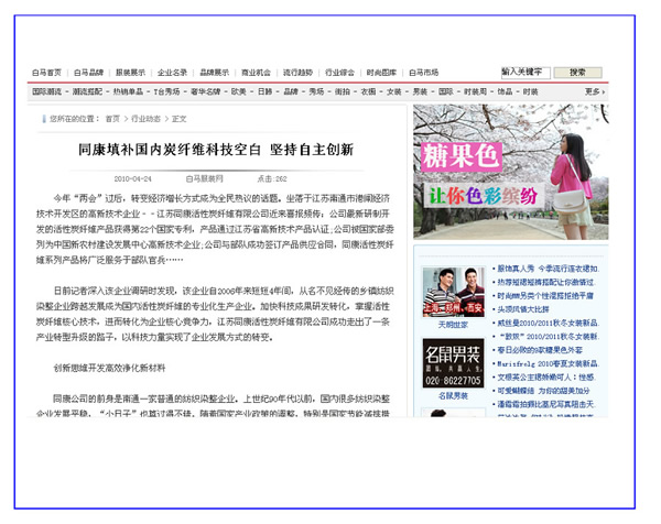 南方紡織網(wǎng)、白馬服裝網(wǎng)——同康:以科技打造活性碳纖維品牌