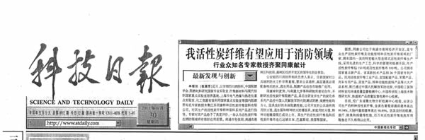 2011年6月30日科技日報,同康活性炭纖維有望應用于消防領域----行業(yè)眾知名專家教授齊聚同康獻計獻策。
