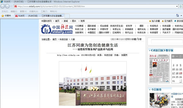 3月10日,中國科技日報記者到同康公司采訪,并在科技日報的兩會特刊發(fā)表。