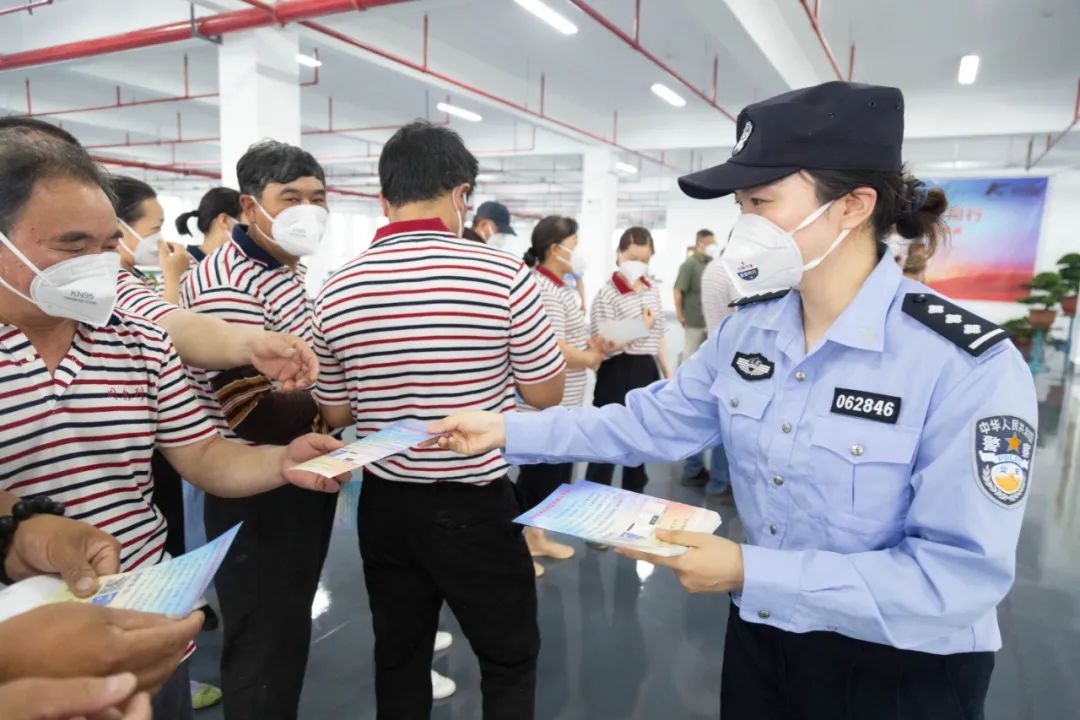 崇川公安在企業內部設置了反詐宣傳展板,民警結合反詐展品及近期高發多發的電詐案例,向企業員工介紹了反詐相關知識,并向公司員工發放了印有反詐公眾號的微信二維碼宣傳單頁。全體人員在反詐簽名墻上簽名,表達“你我同心·反詐同行”的活動熱情