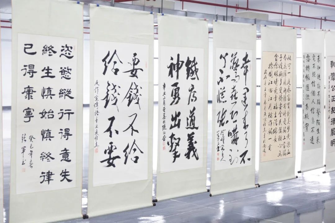 反詐宣傳過后,民警與企業員工共同參觀反詐宣傳書畫展。本次書畫展的作品涉及書法、水彩等多種形式,共計30余件,由南通市書畫界專業人士、社會各界書畫愛好者創作。將反詐主題詮釋得淋漓盡致的文化作品,讓本次活動取得了良好的宣傳效果。